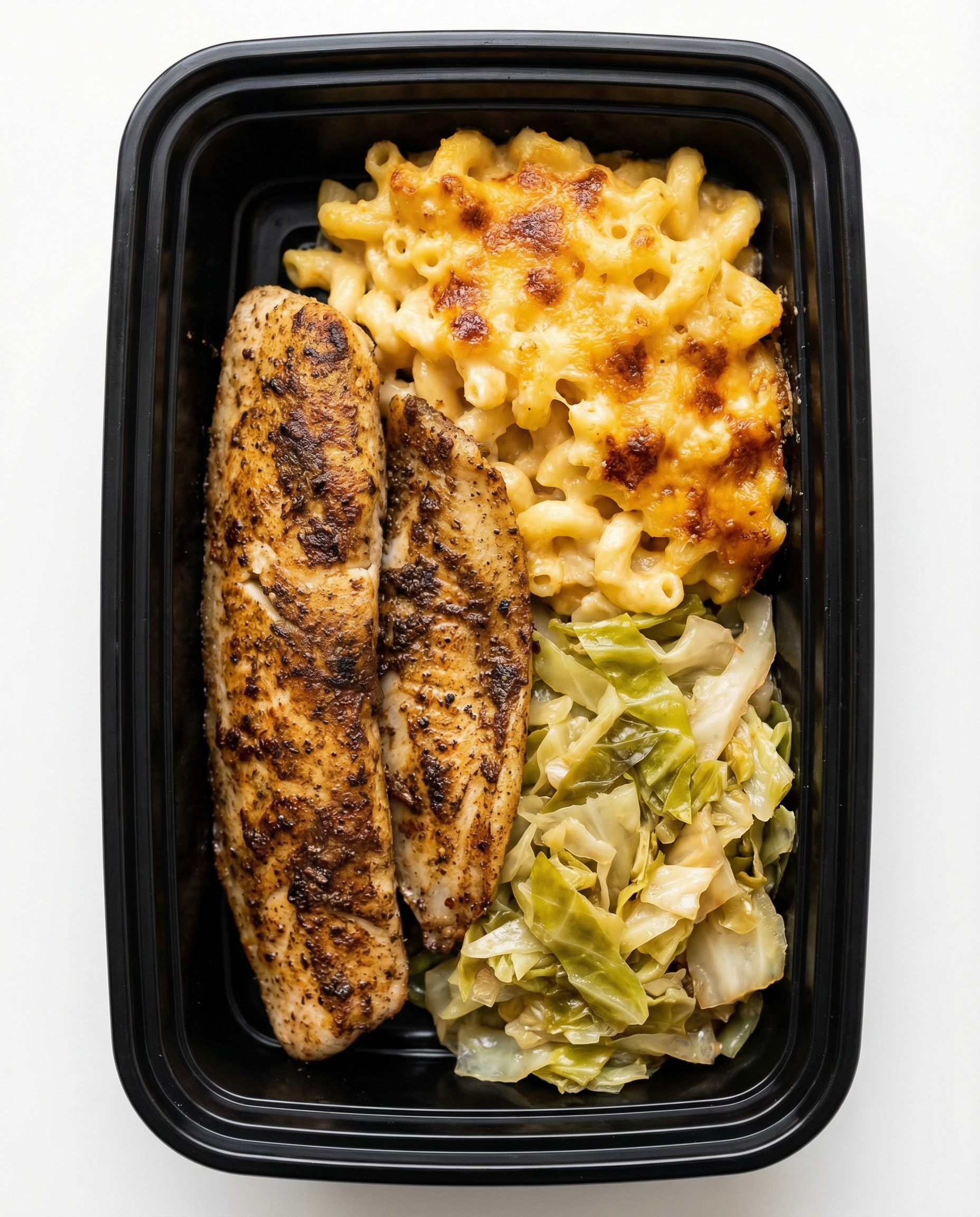 Be the first to review “Jerk Tilapia w/ baked Mac and Cheese & Cabbage (2 pcs)”